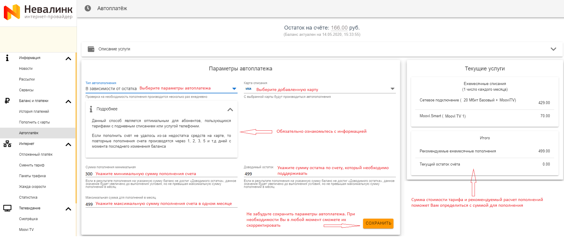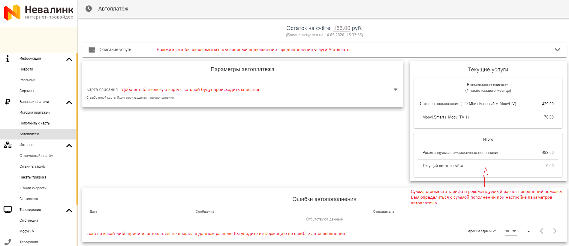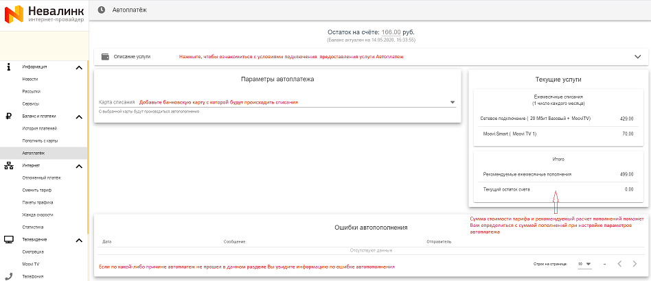 Реквизиты карты вводятся на странице банка и не попадают в ООО «Невалинк». После выполнения платежа ООО «Невалинк» получает от банка только маскированный (скрытый) номер карты, а также срок её действия для дальнейшего отображения абоненту. Данные банковских карт в ООО «Невалинк» не хранятся.