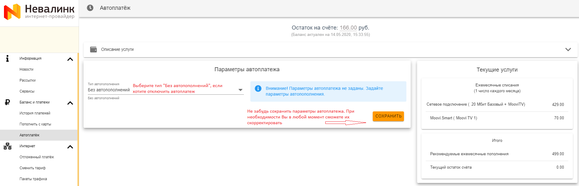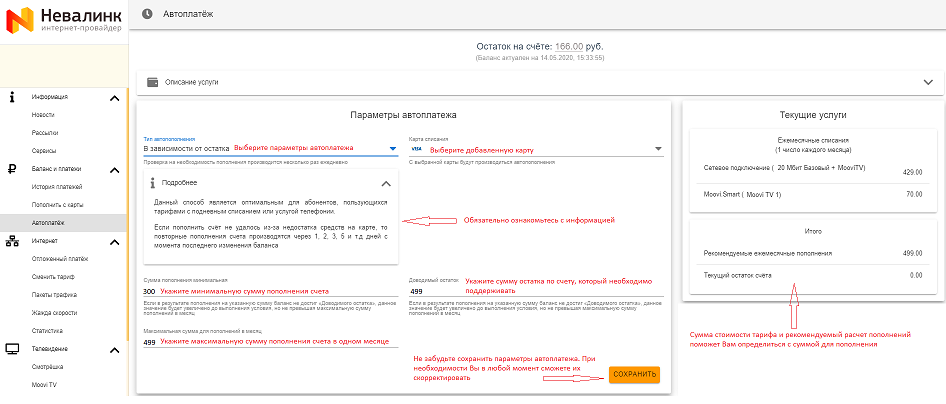 Все настройки системы Автоплатеж производятся в личном кабинете абонента.