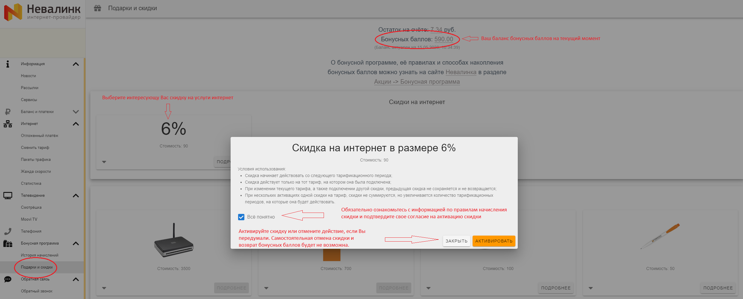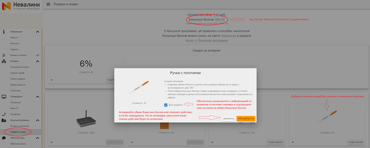 - Ознакомиться с правилами получения скидки на услугу интернет или сувенира от компании Невалинк