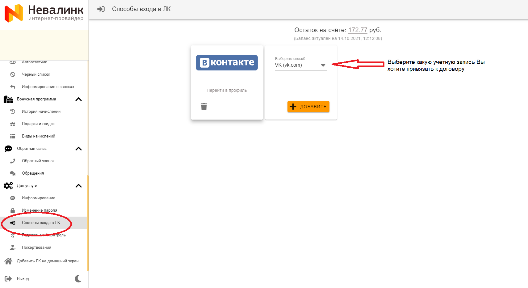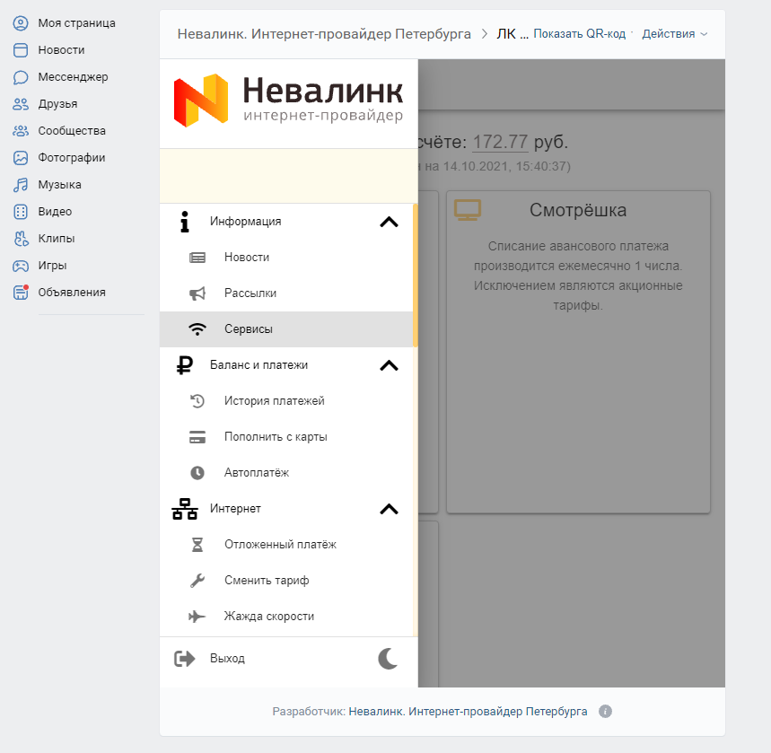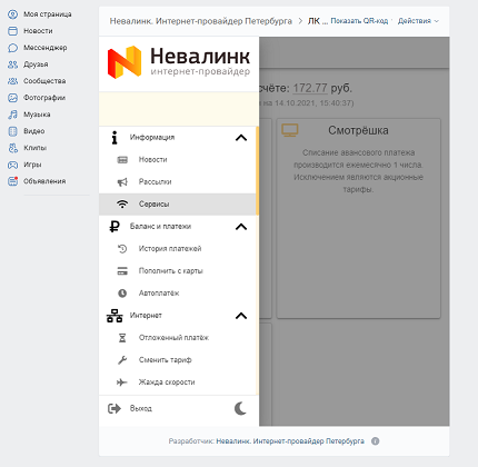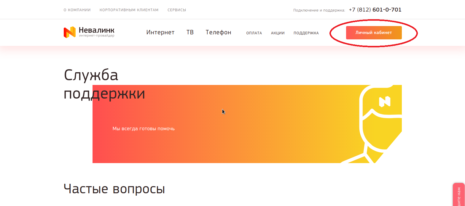 - Личном кабинете Невалинк