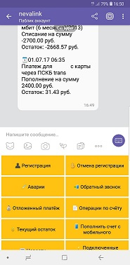 Для Вашего удобства, нашей компанией разработан робот @nevalinkBot в мессенджере Telegram.