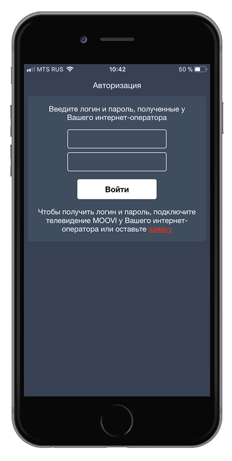 - Используйте логин и пароль для входа в приложение Муви ТВ.