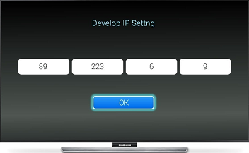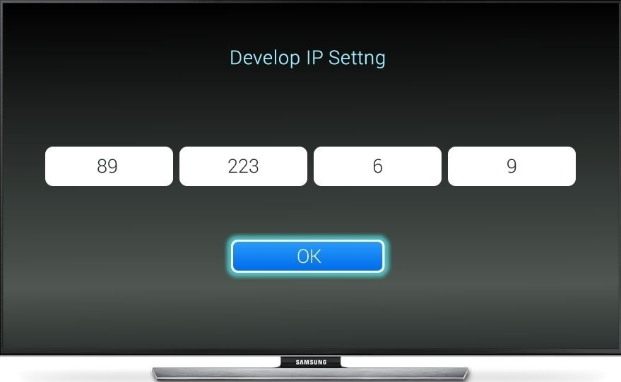 - В появившемся окне для ввода цифр IP-адреса указать все четыре группы цифр, подтверждая каждую нажатием центральной кнопки-крестовины пульта. Введите комбинацию «89.223.6.9». После ввода нажмите «ОК».